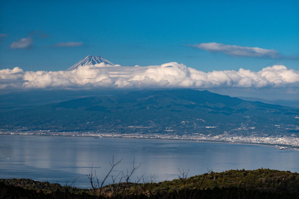 富士山の麓には愛鷹山・沼津市街地、そして駿河湾。