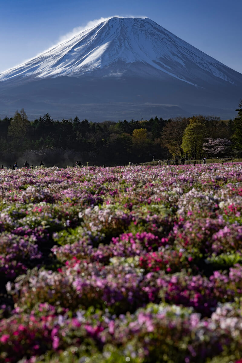 | 撮影地点のバリエーション | ①龍神池越しに富士山 ②富士芝桜展望台の上から全体を |