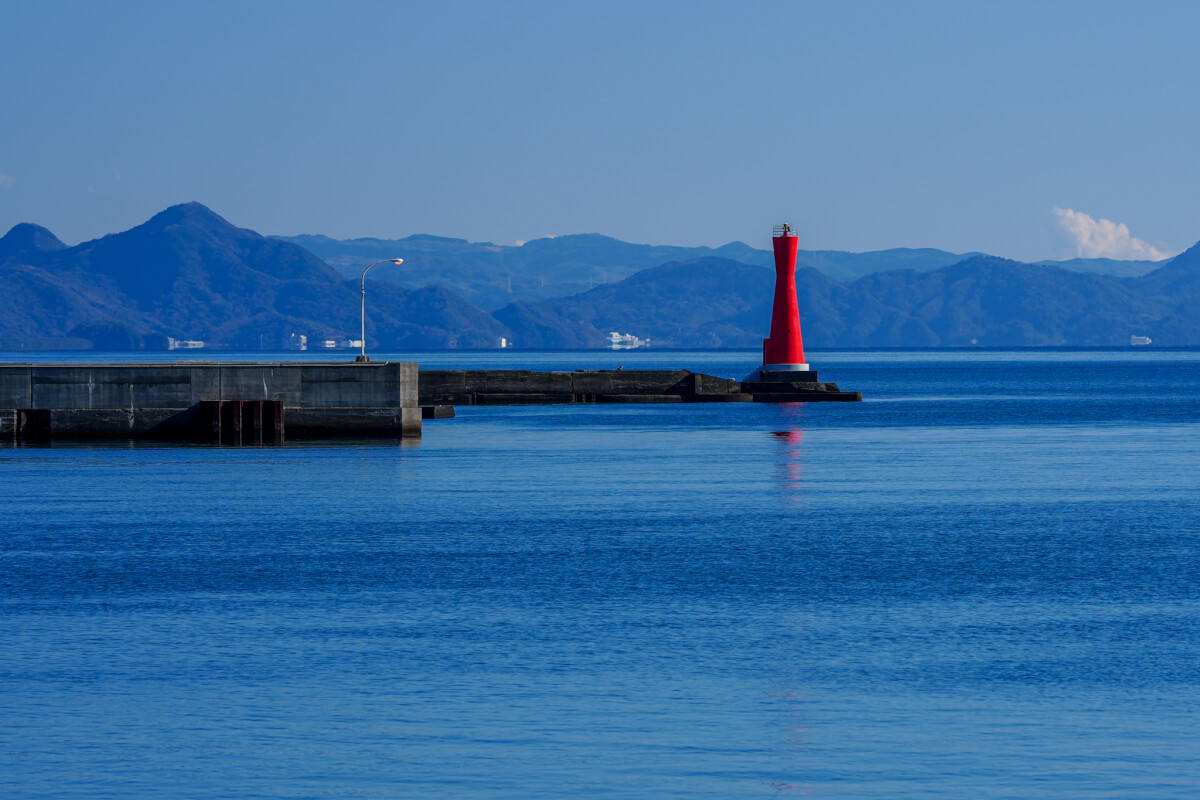 駿河湾方向に振り返ると、あの赤い灯台が見えて、あれを撮るのも悪くないって。