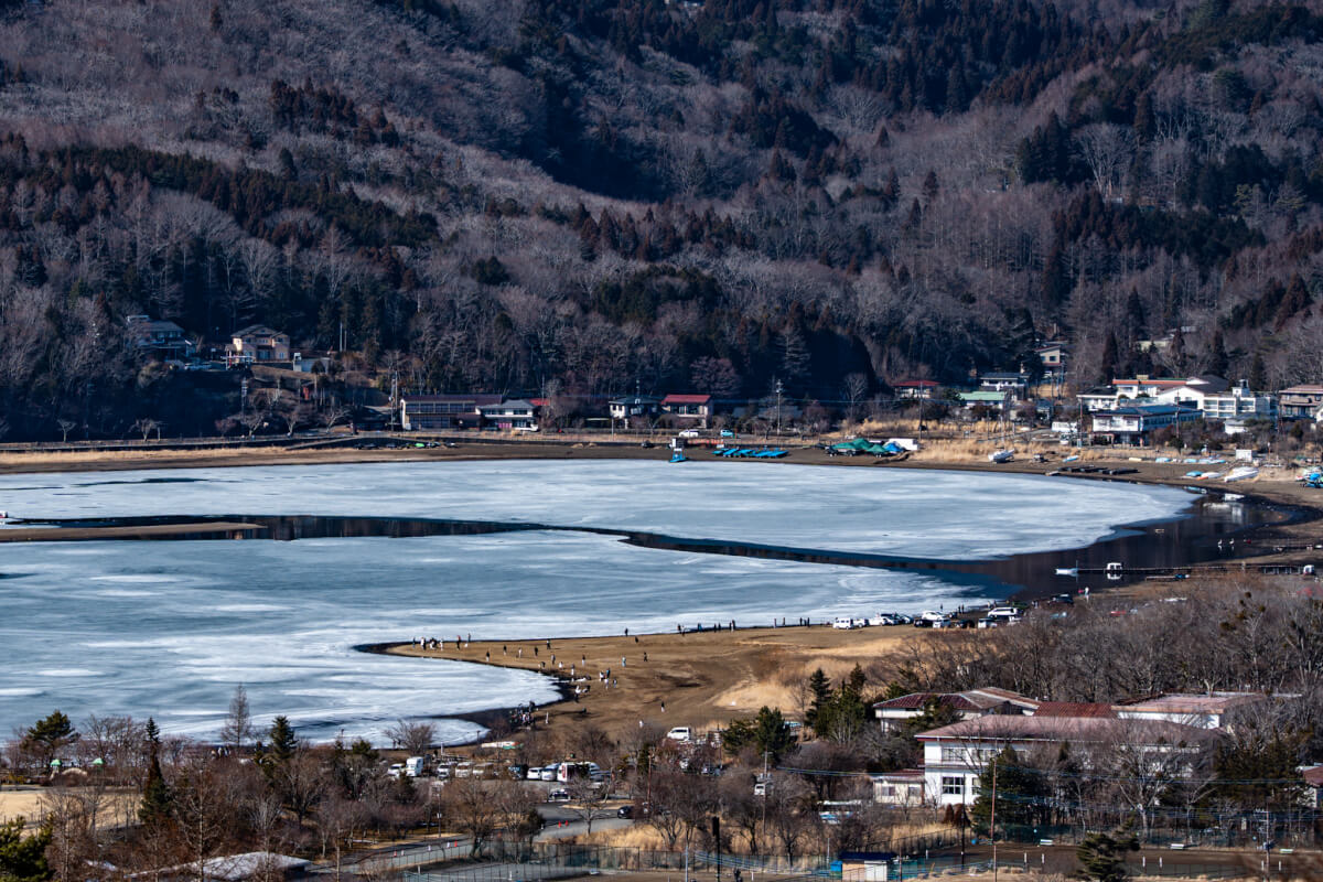 そして山中湖の氷結の色が綺麗。