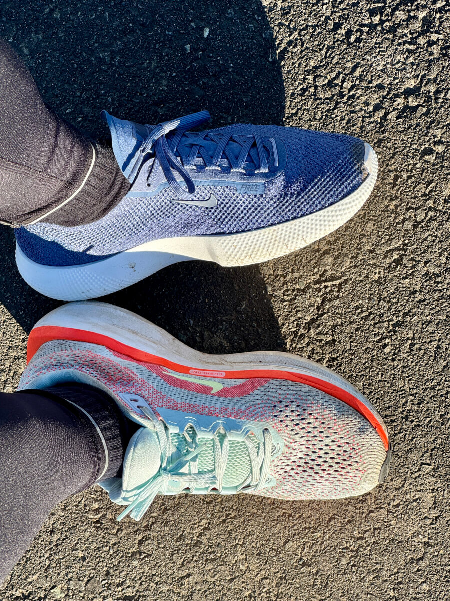 ランニングシューズの違いが分かるランナーを自称したくて、片足づつペガサス41とウィンフロー11を履いてみた。