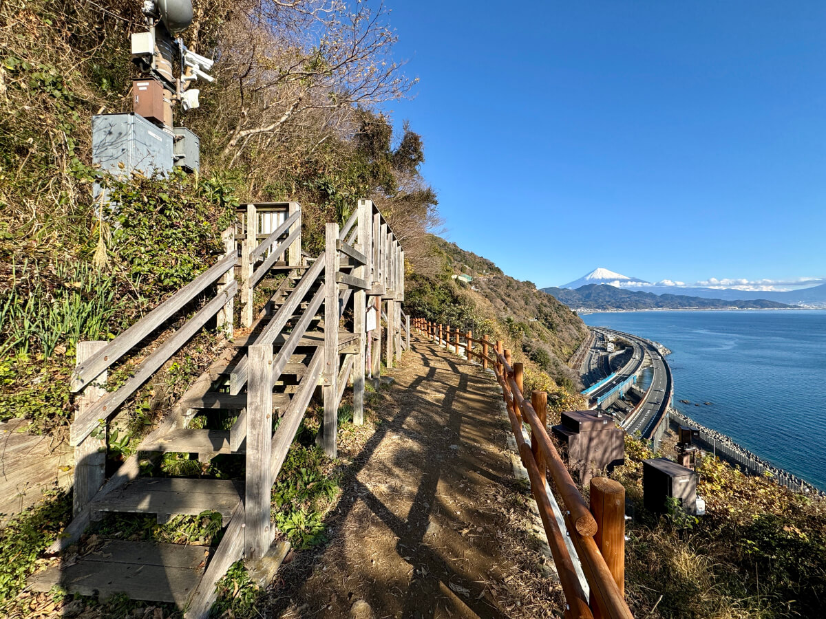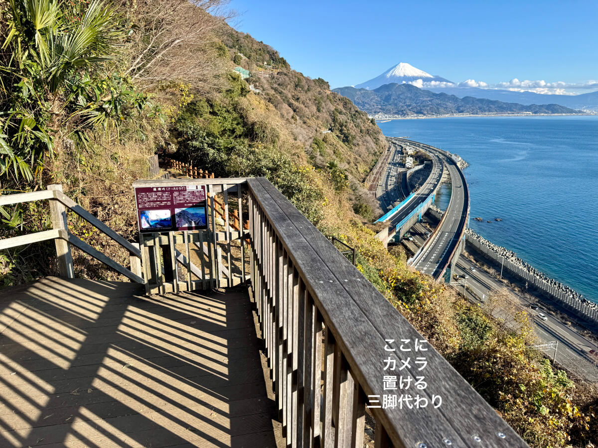 薩埵峠展望台はこんな場所、狭いとはいえそんなに人が集中することもないから、落ち着いて富士山写真撮影ができる。