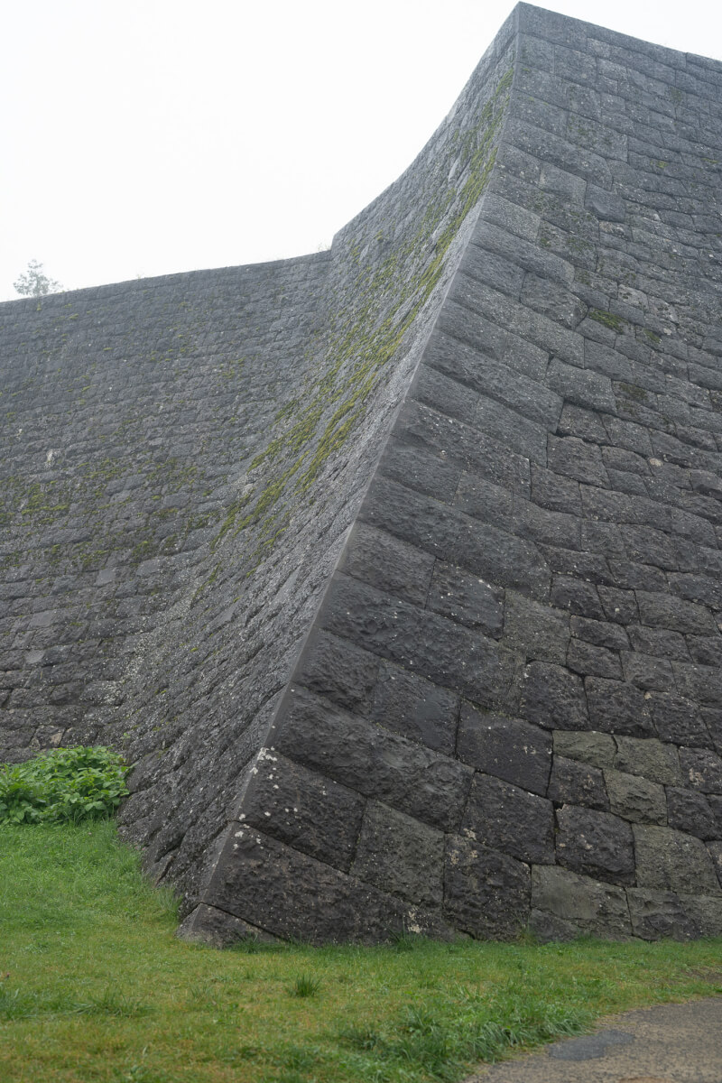 美しく反り返る高石垣、切込接&江戸切の技術によってビジュアル的にも磨かれている、よじ登る気力すら湧かない。