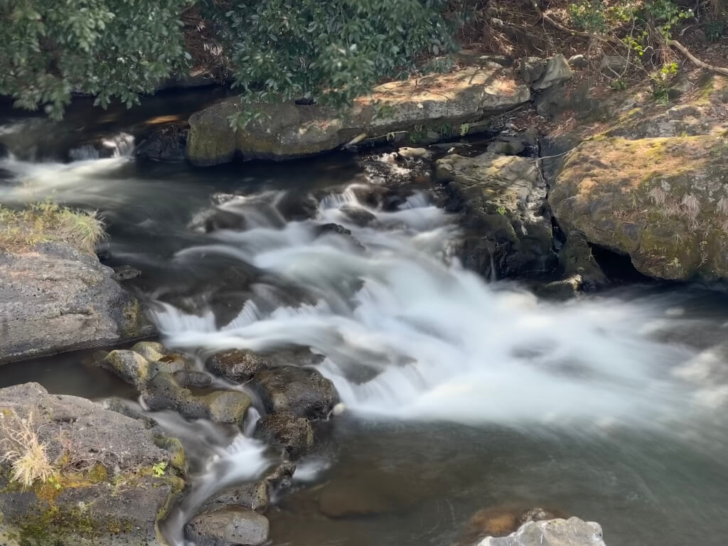 裾野偕楽園の不動の滝、もう暗くなっていたのでiPhone15proでの夜景モード撮影で。