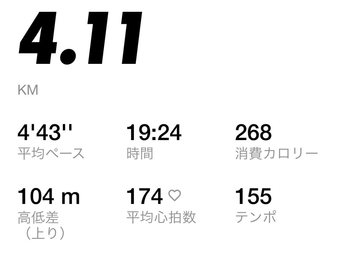 昨日はナイキフリー2025で初の走りだったのですが、良いタイム(5'27"/1km、22:25、高低差89m)だった。