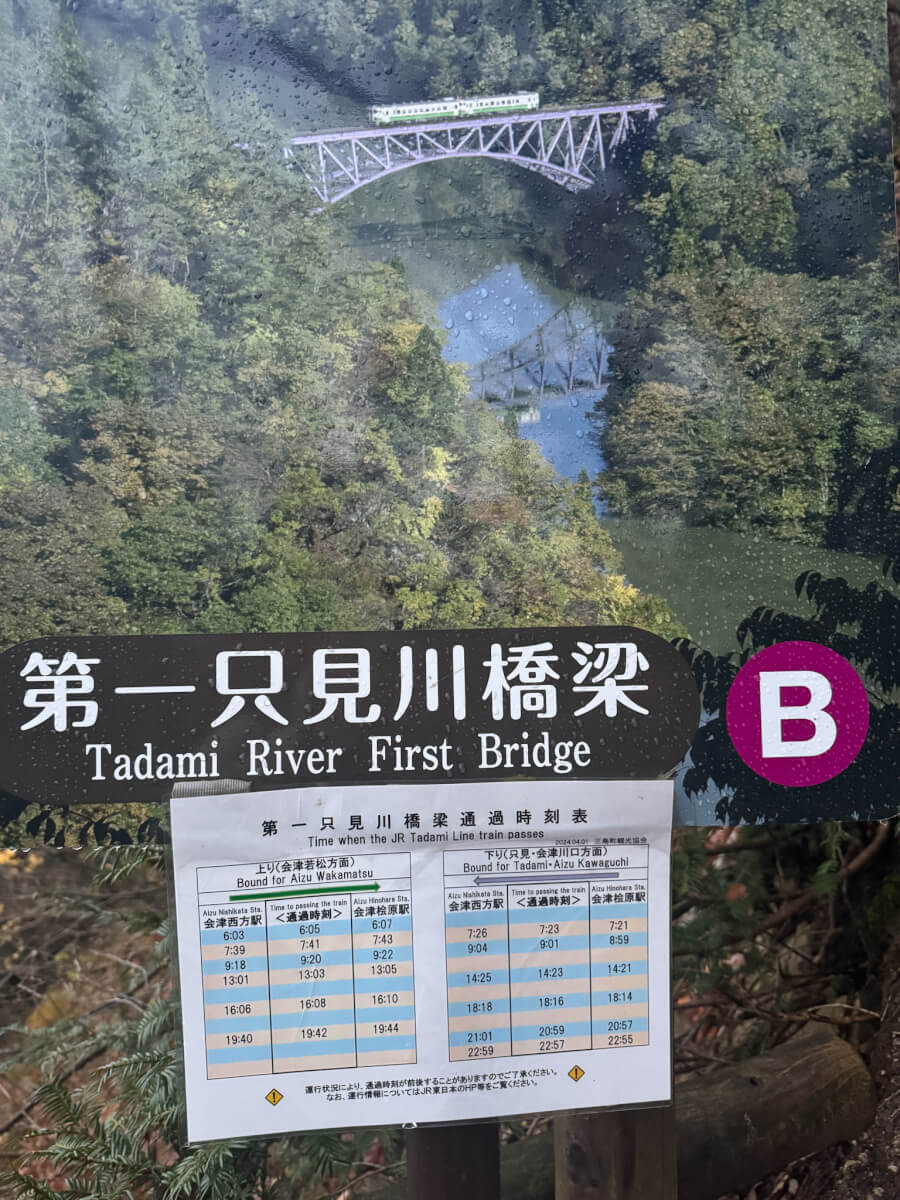 第一只見川橋梁の中央付近に、只見線電車がくる10秒ぐらいが写真撮影ベストタイム、連写で撮って好機を逃さずにね。