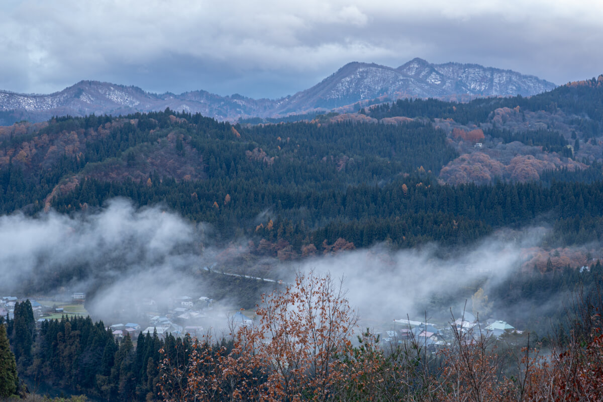 会津宮下駅方面の集落、もう雪景色が始まっている山深い地域でした。
