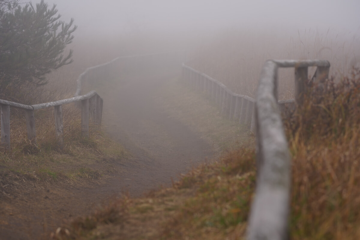 結局何も見えない、シャッターすら一回も押さずに6:30に撤退、仮眠して9:30に戻っても状況は変わらず、その後もただ霧で何も見えない。